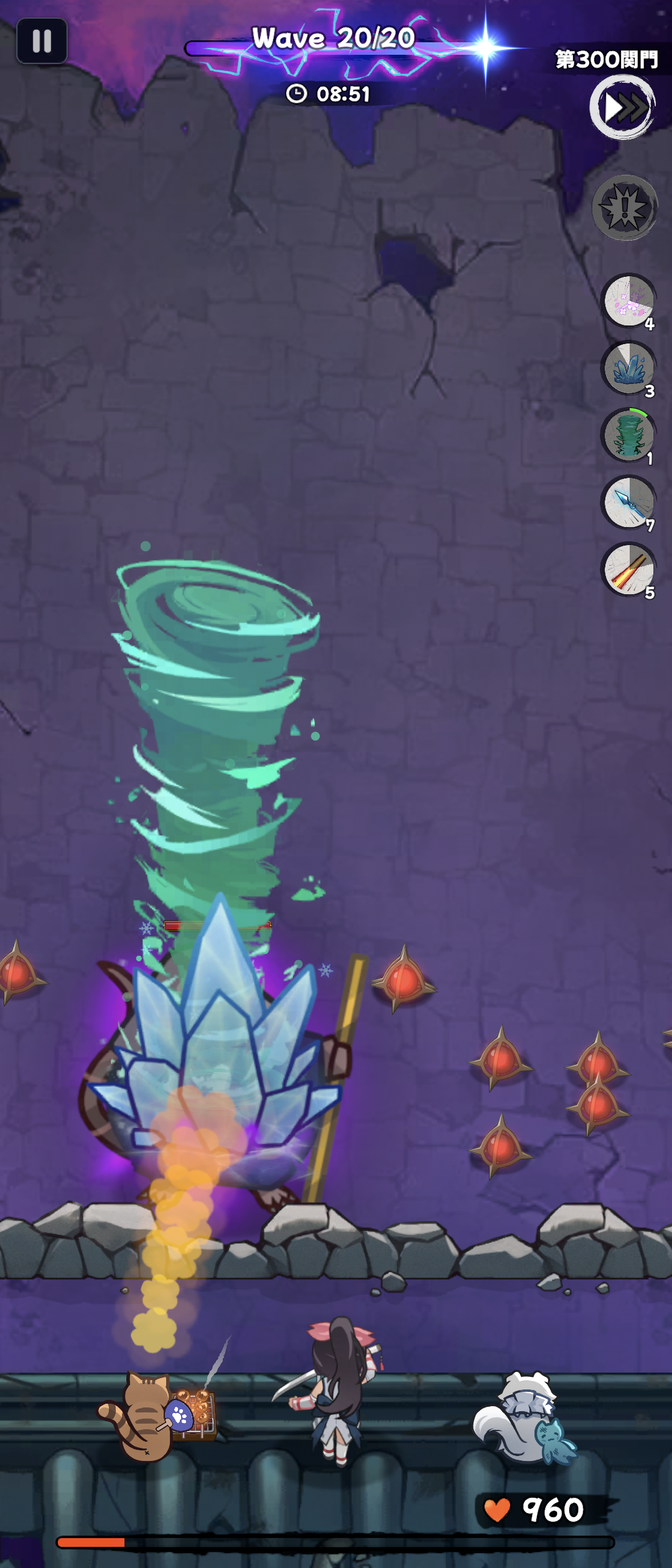 75 | タフなジョロウグモとダイヌリカベ、遠距離攻撃のユキオンナが初手で出てくるのがかなりキツイ。5ウェーブまでに陽電子砲など火力スキルを作りたい。ユキオンナは「確率でダメージ減少効果を無視」の装飾品を付けていれば霜獄などで凍結させられるのでそれで足止めを。射程内に入ってしまっても、霜獄3連発になっていれば割と食らわずに済む。最後に出てくるオニショウグンは普通に凍るので特に問題なし。 |