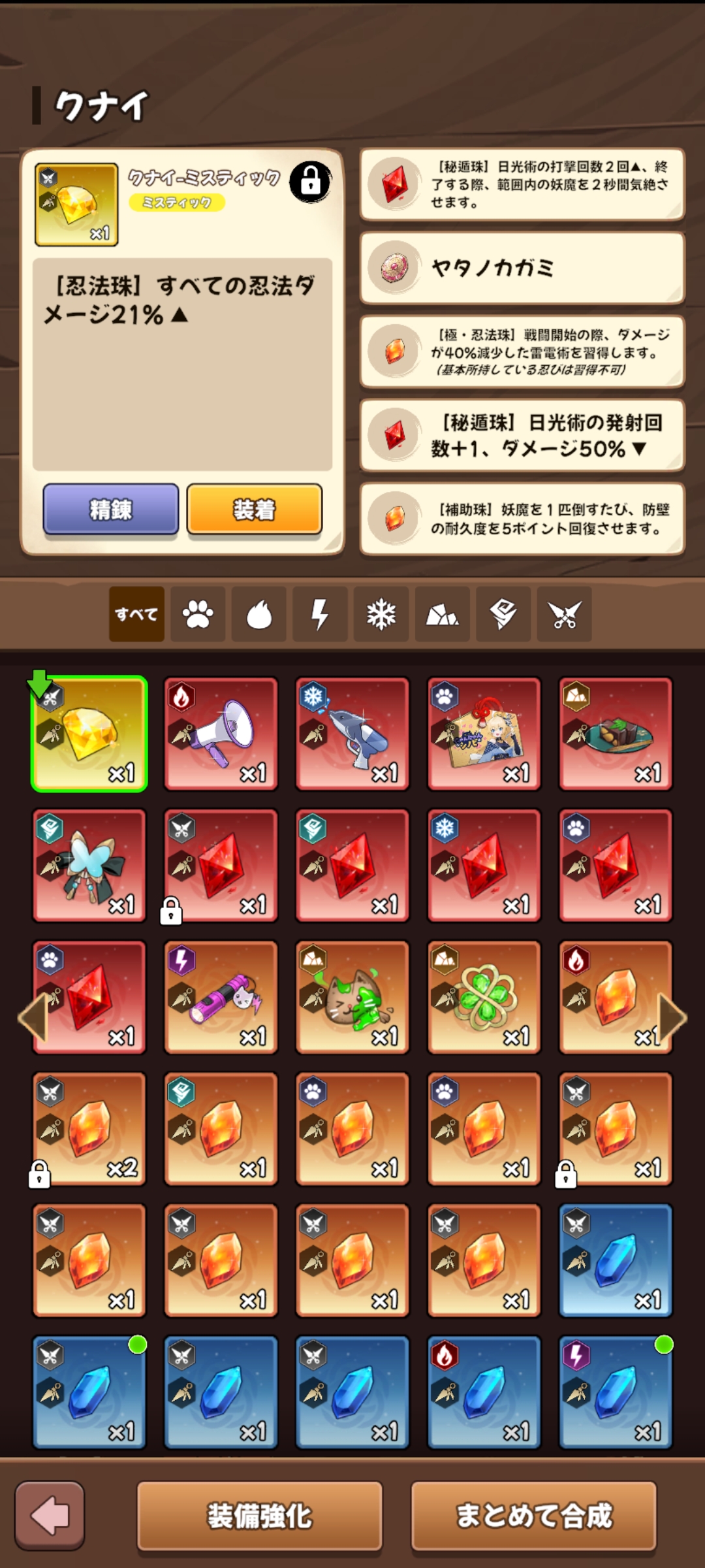 コイン | Exp | 忍術書 | 制作書 | 装飾品 2~5個目 ドロップ率 |