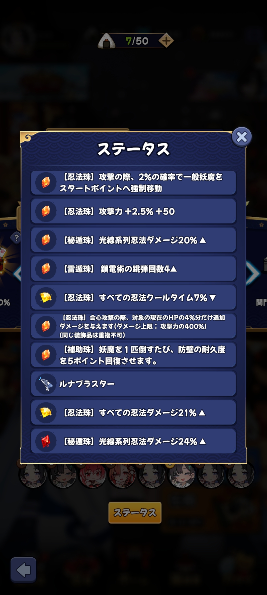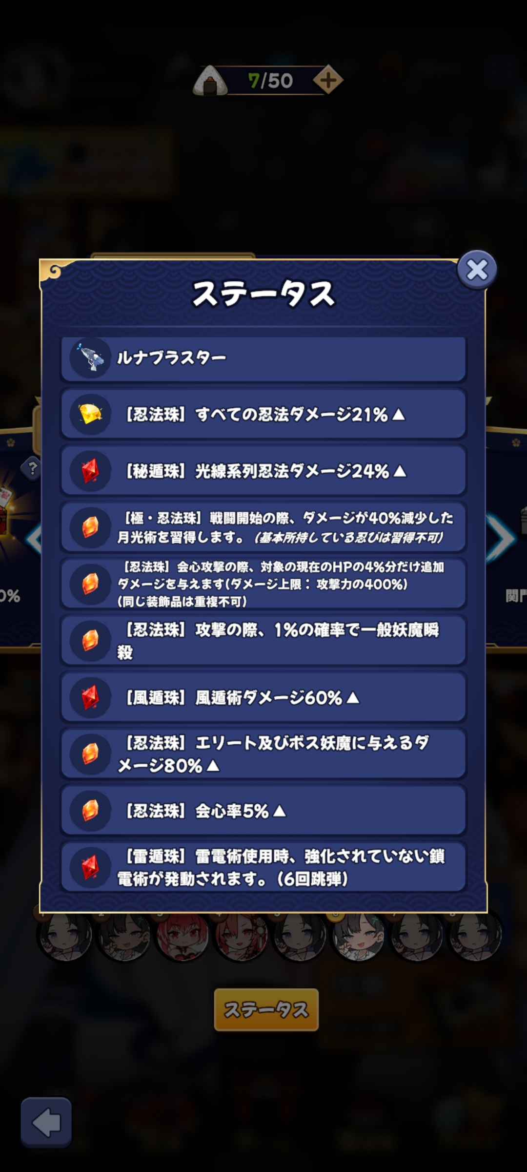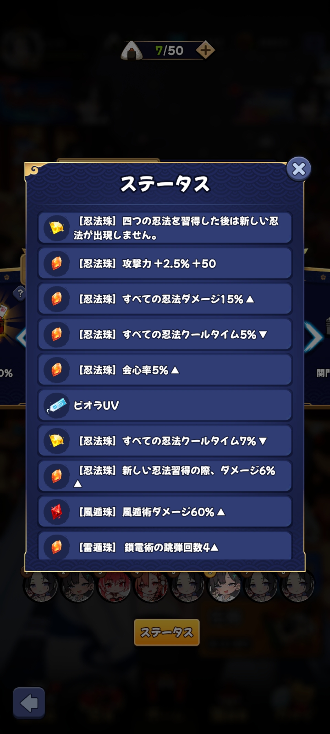 忍術書50、コイン300、制作書10 | 忍術書100、コイン400、制作書20 | 忍術書150、コイン500、青猫石150 |