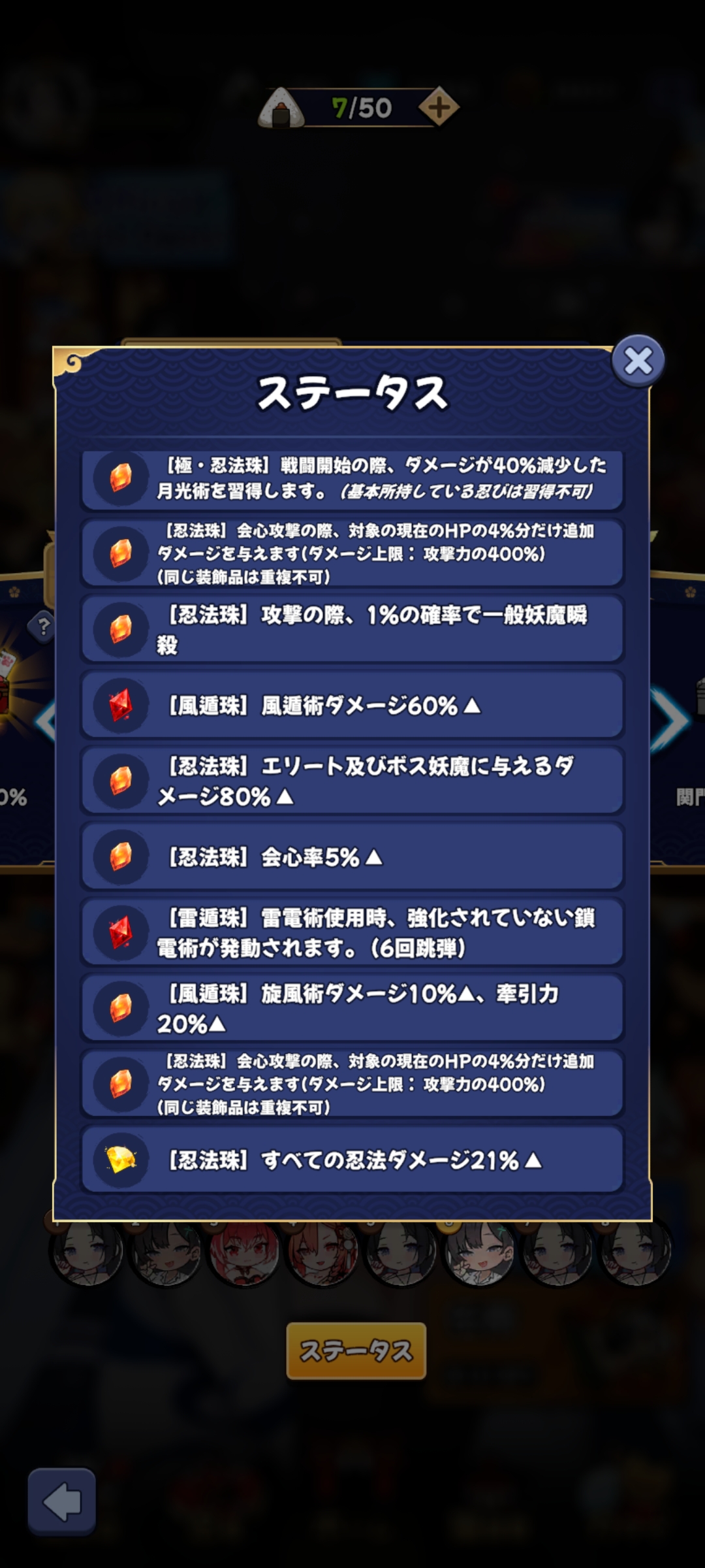 コイン | Exp | 忍術書 | 制作書 | 装飾品 2~5個目 ドロップ率 |