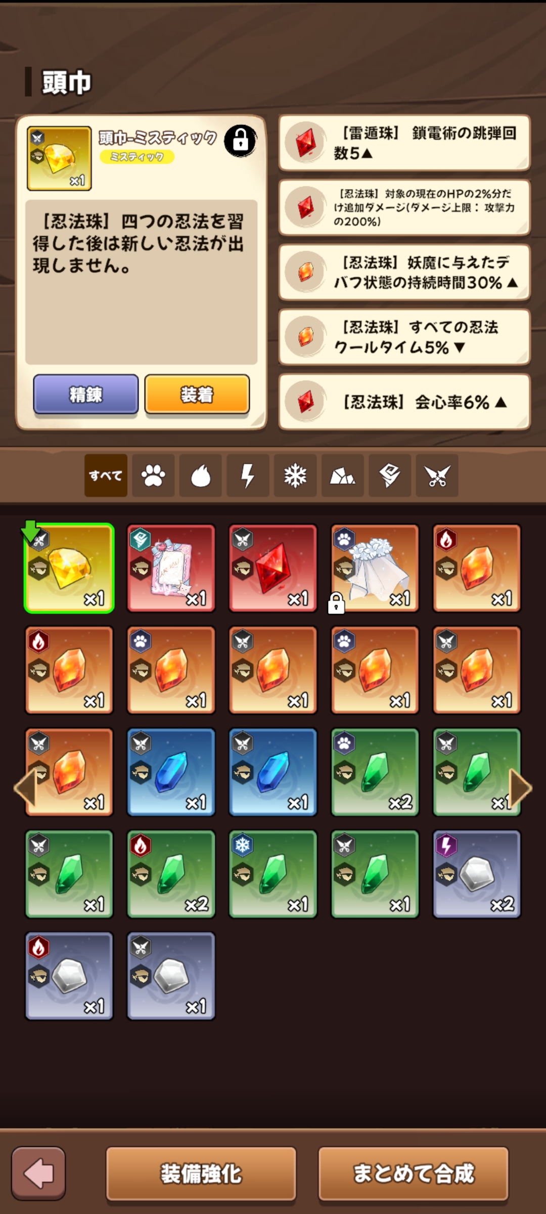 一反木綿に特化したキャラ欲しいね、強すぎて201階突破出来ない( ̄▽ ̄;)風遁使う下忍来るまで放置かな