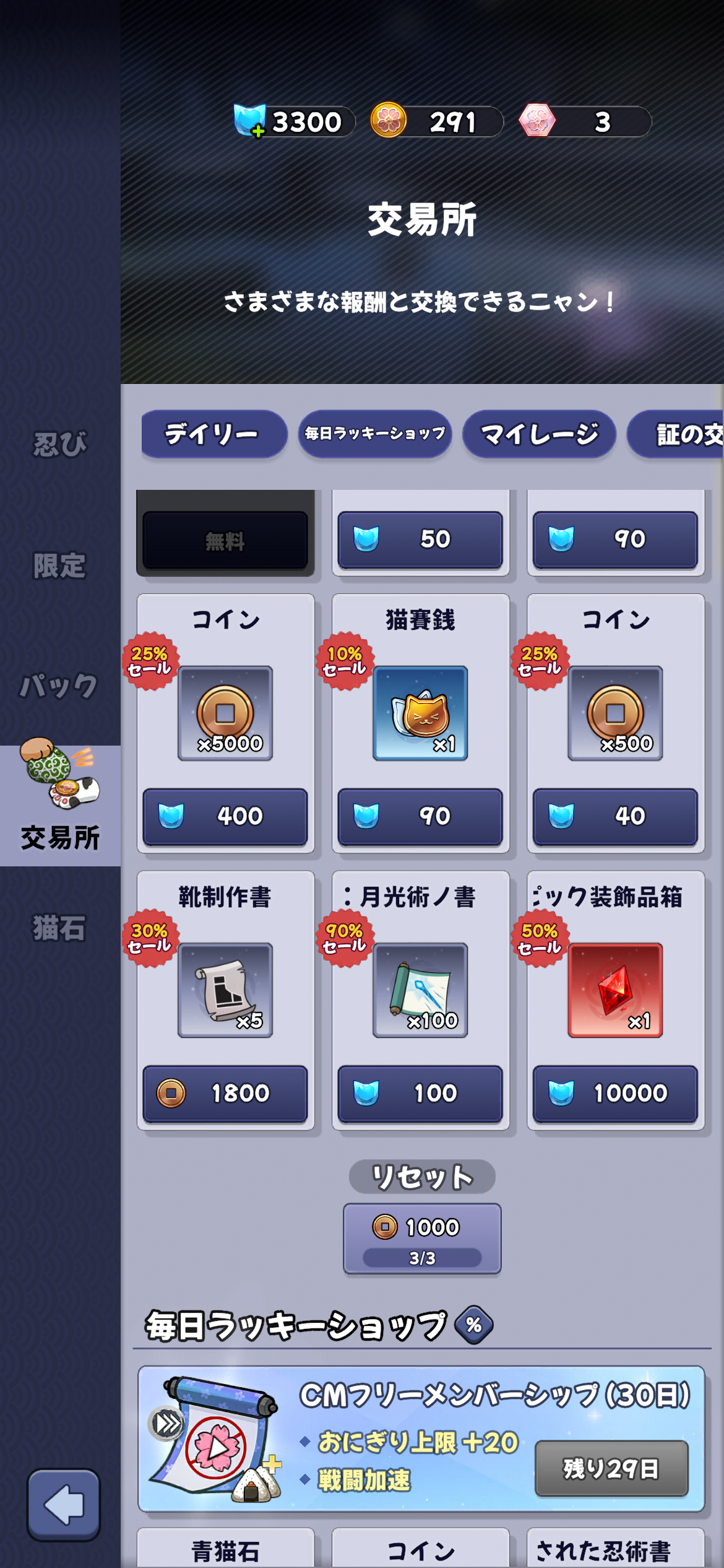 デイリー・忍術書パック | 忍術書600 | 🔴300 |