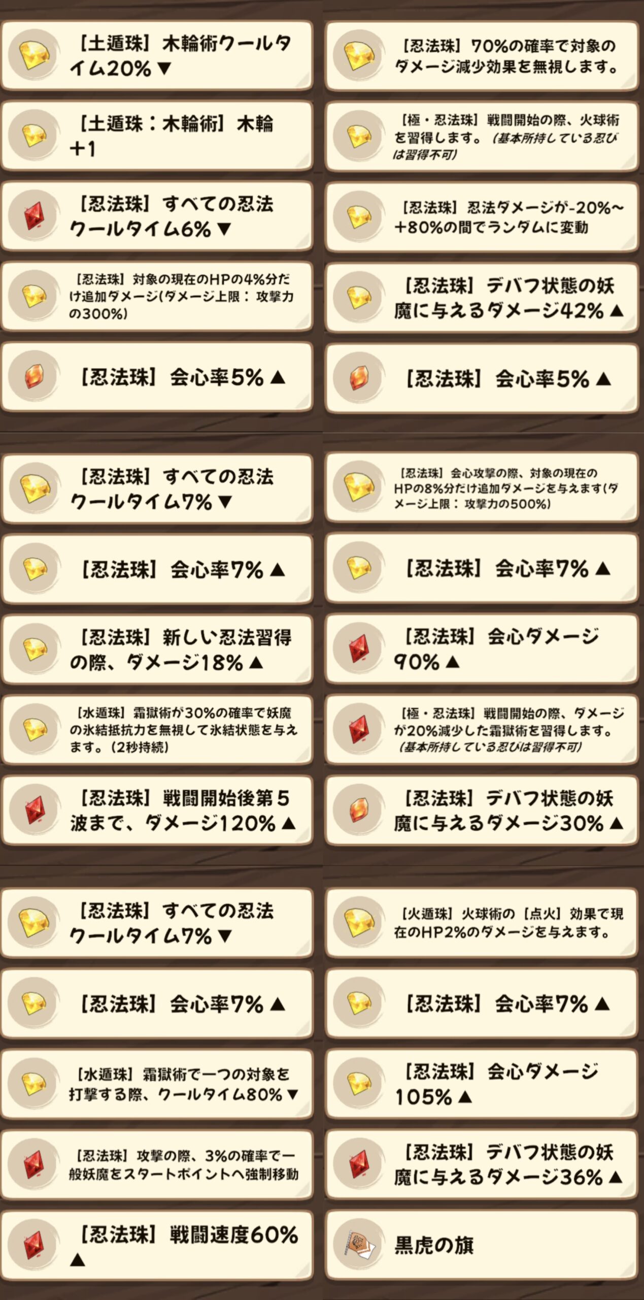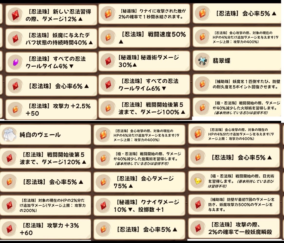 >>1934 キャラは花嫁あかりでしょうか? 瞬殺があるみたいなので忍法レベル優先かな 3つ付いてる会心時追加ダメージは上限があって頭打ちになるので減らしたいですね