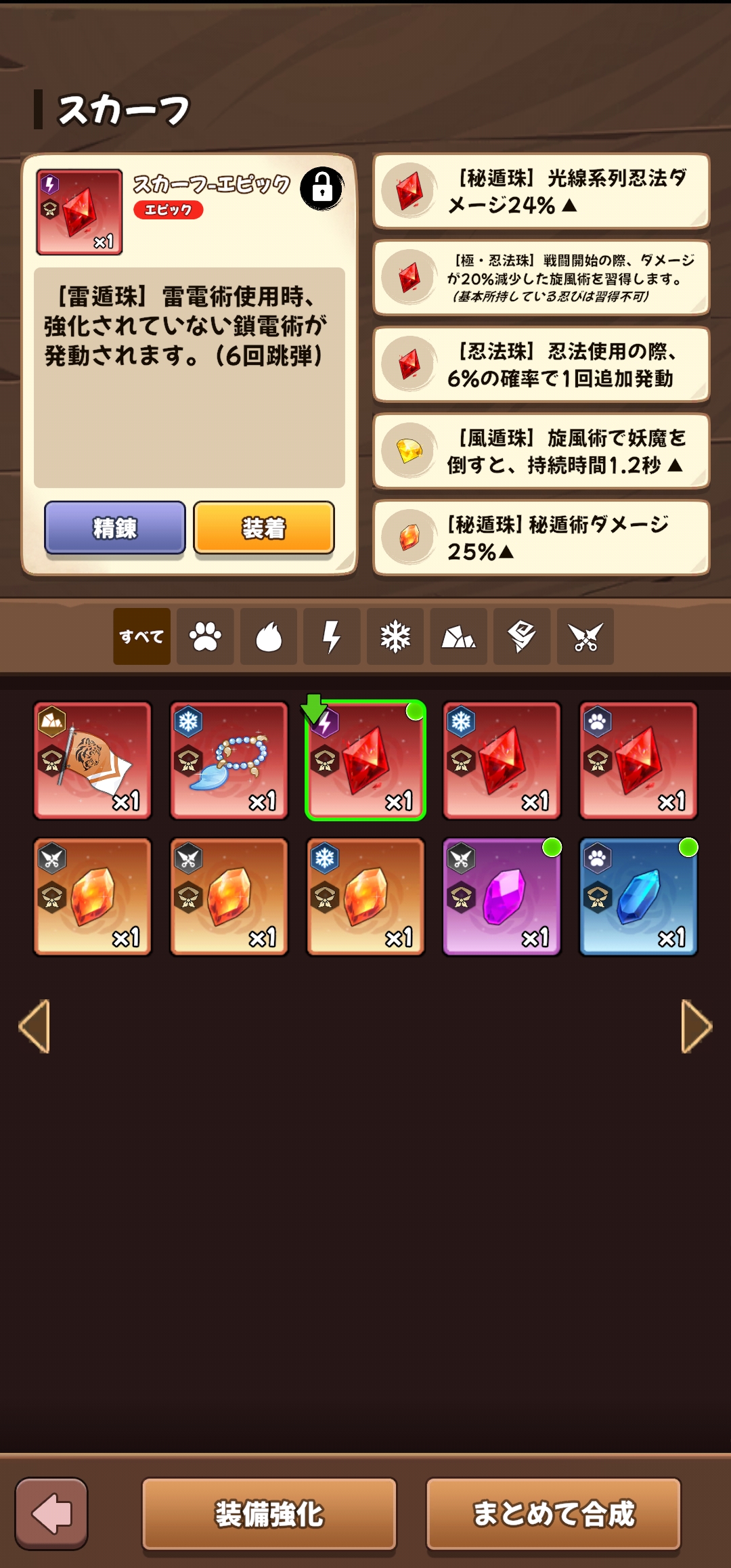 あとミスティックだから狙うもんでもないけど、クナイヒット時ダメージアップ(クナイ)