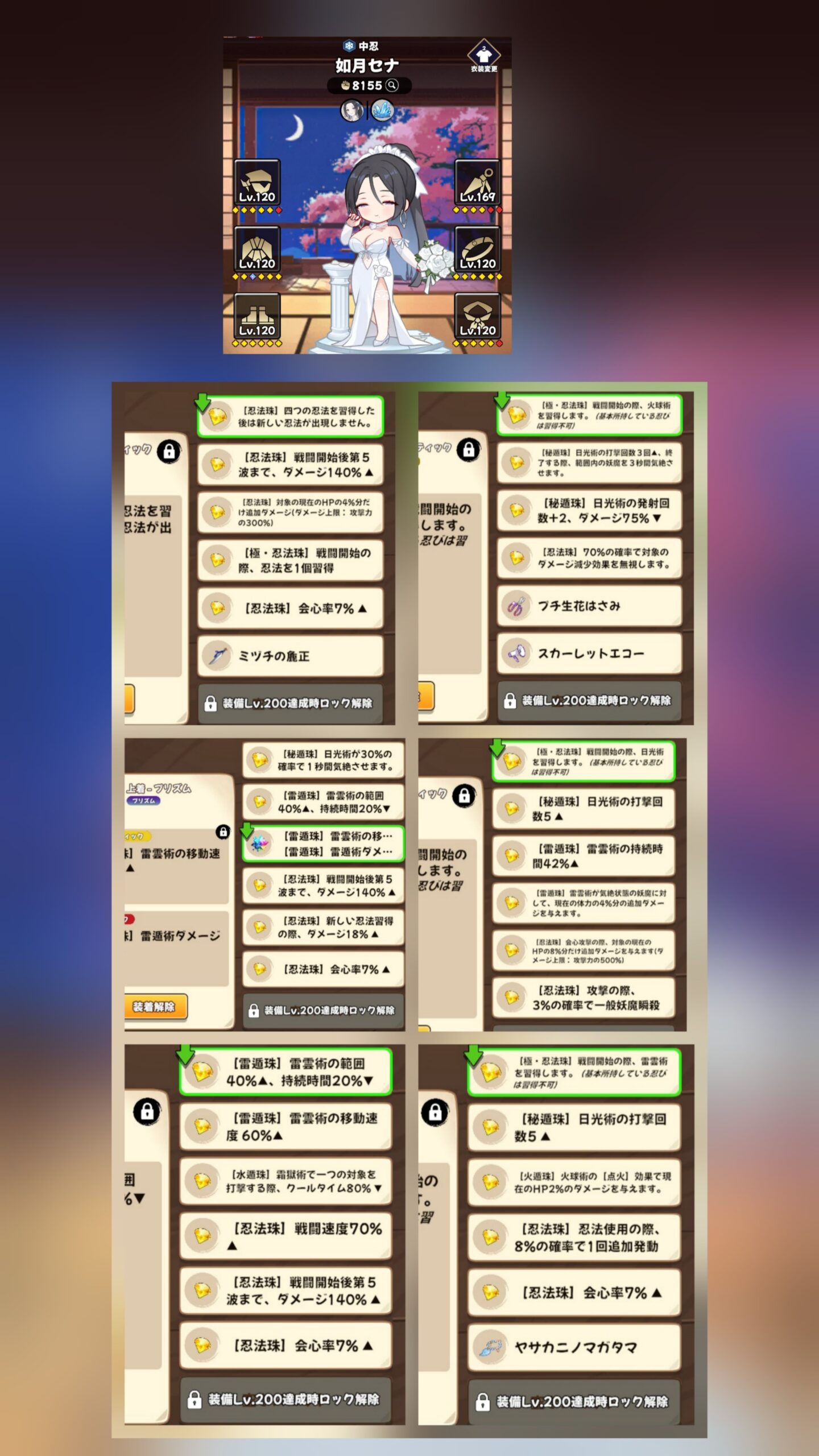 雷網はWAVE進んだ時に新忍術しか選択肢が出て来なかった為足止め出来る忍術も選択肢に出て来てないし常に防壁近くに敵いるからこれで良いか?的な感じで取得