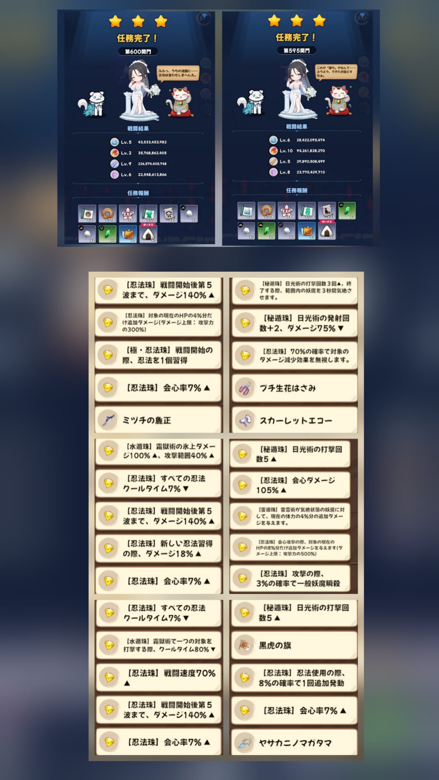 防壁石の槍の押し返しと合わせ忍術取得時に砂爆気絶と秘技取れたらほぼ勝ち確なので倒し損ねを無くすため20WAVE後半まで気長に耐久して秘技撃って一掃させて終わりです