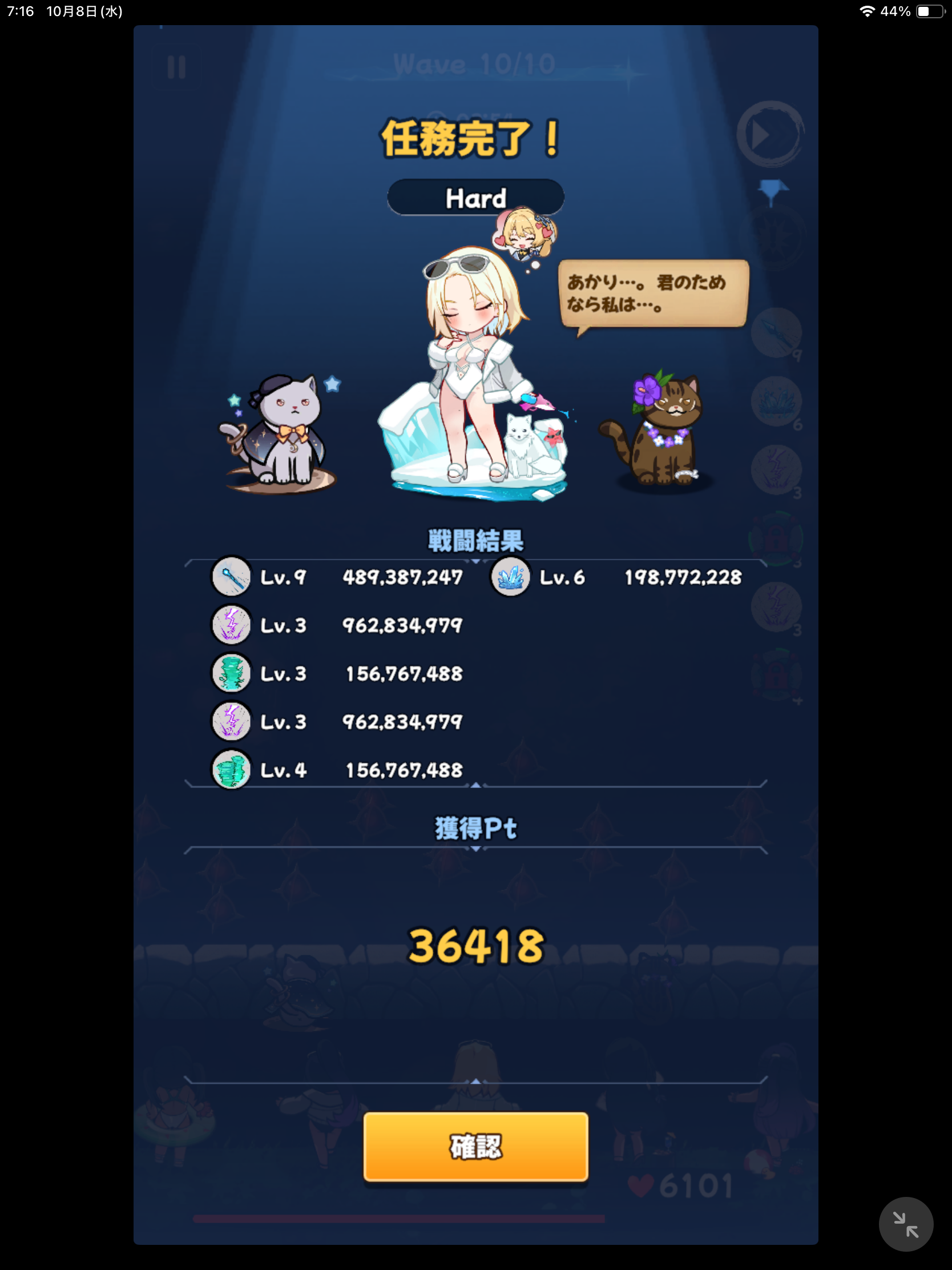 >>7217 まずは討伐おめでとう。 最初にセナチコダメであかねメインって言った自覚はあるから、他の人が詰まるようだったらどうしようって思ってたので安心しましたわ。 ちなみに自分は初日全敗、二日目1勝2敗、三日目2勝1敗からの全勝で200~300位入れてるから、地道に継続していれば装飾品はもらえそう。 自分の構成はこんな感じ。