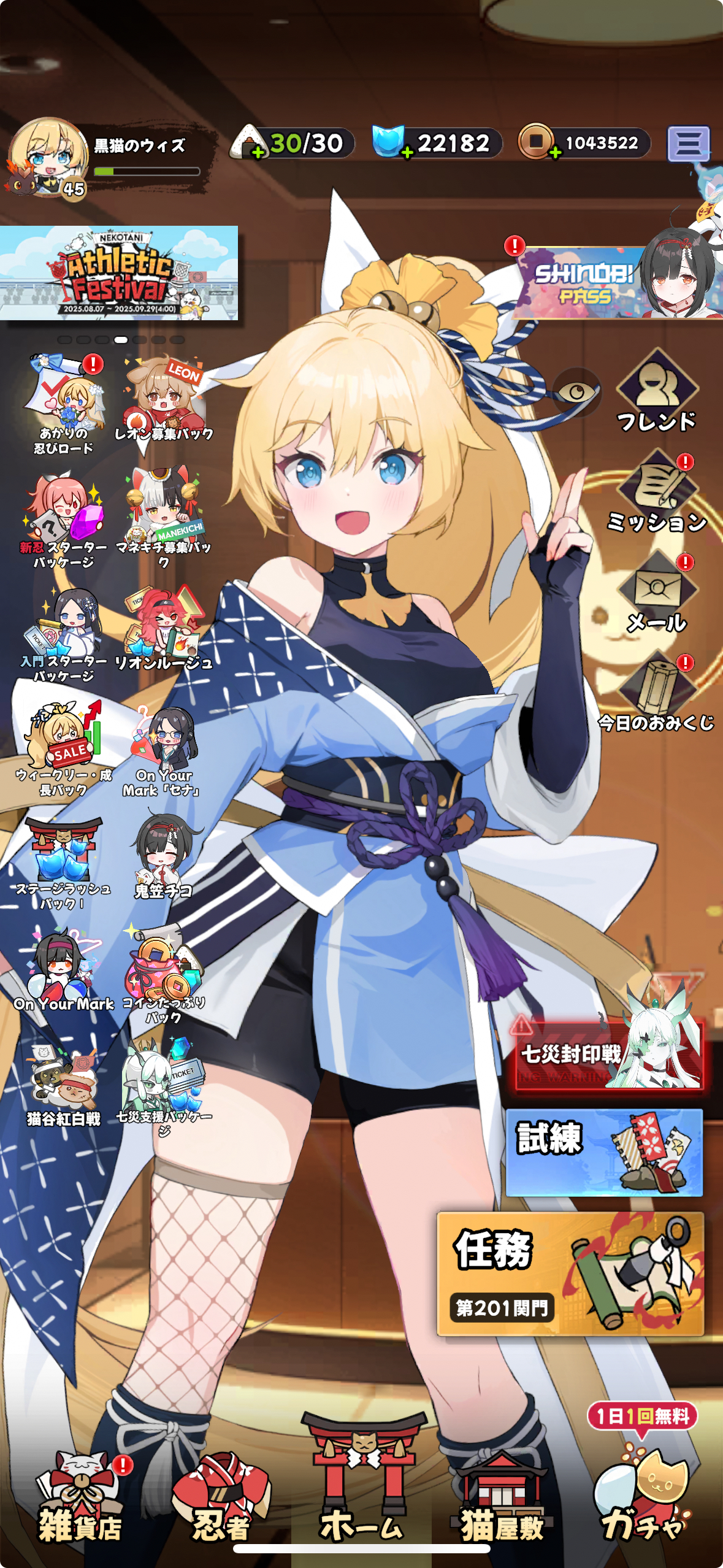 メイン:あかね(オータム衣装) サブ:特装大河,特装リョウ,ノーマルリョウ,特装クロコ 猫忍:シロ(レジェンド☆0)、ベル(ユニーク☆0) 装飾品:クナイ→アメノムムラクモツルギ,ルナブラスター,ひょうたんダメージ無効化無視,会心 頭巾→月光クールタイム10%↓ あと全スキルクールタイム↓を頭巾,装束,足袋につけてるかな。 この構成にしてから負けなしです。 あかねがいると特装大河もダメージ増幅取らなくても月光屈折が最初から取れるから強化でぐだらなくて済むし、片方封印食らったとしても月光がもう1本あるからめちゃくちゃ安定してる。