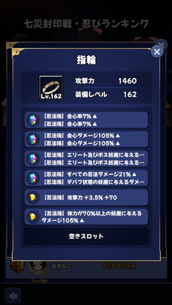イベントアイテムのおにぎり交換で回して上位500まで終わりましたよっと。 加速妖魔が増えたから取るスキルによっては事故ることもあるなあという印象。 あとボスにもぐらが出るようになったのがめんどくさい。 それなりに鍛えた霜獄か月光じゃないとなかなか落ちてくれません。激霜あるならしゅんころだけどね…