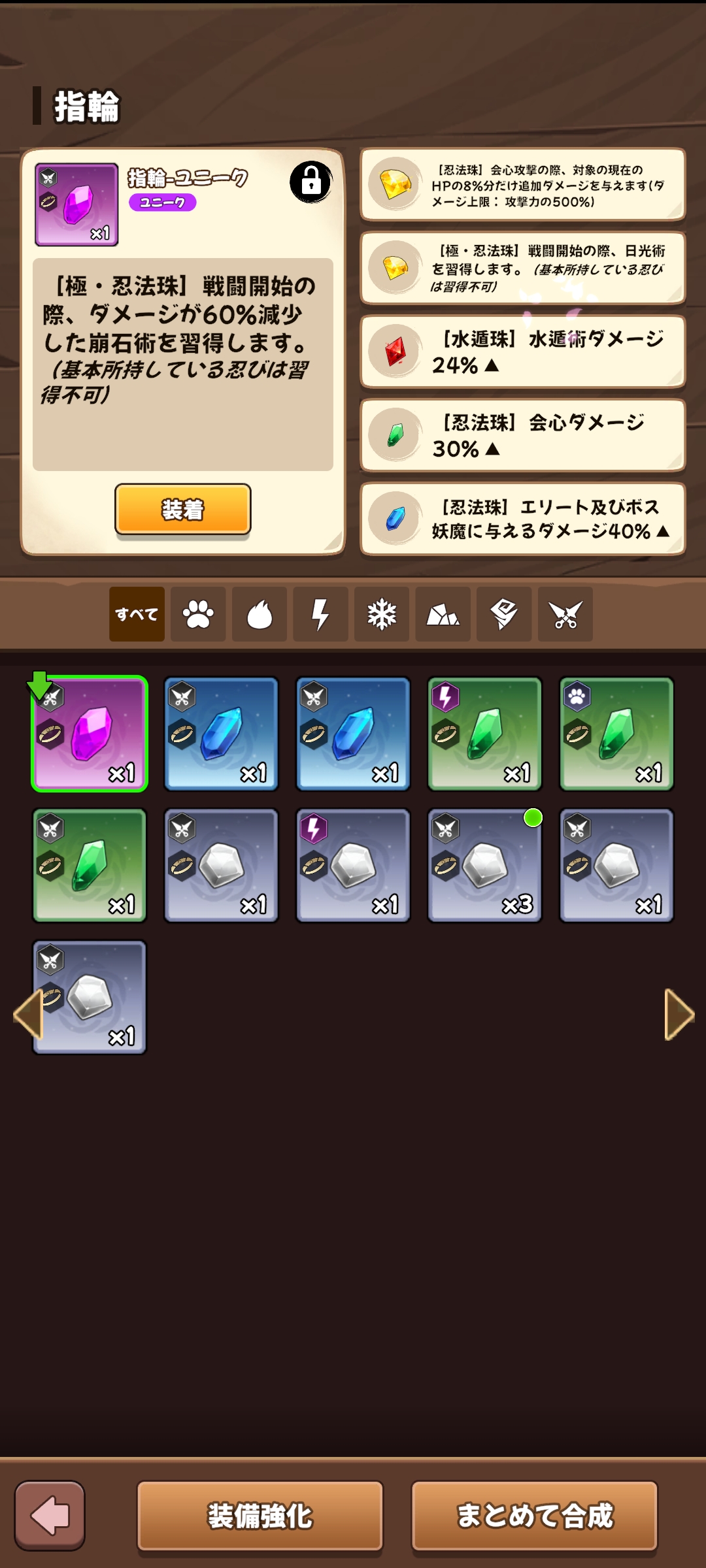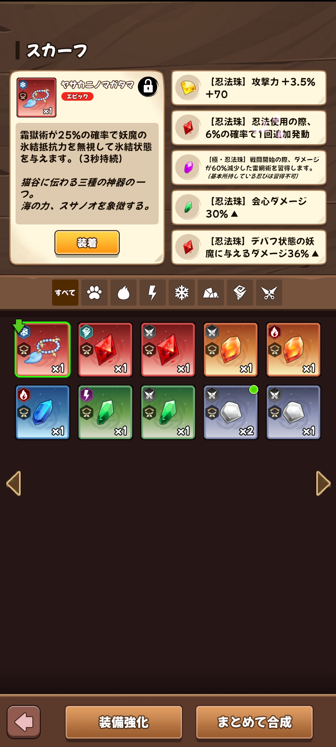 【水遁珠】霜獄術が❶%の確率で妖魔の氷結抵抗力を無視して氷結状態を与えます or 【ヤサカニノマガタマ】