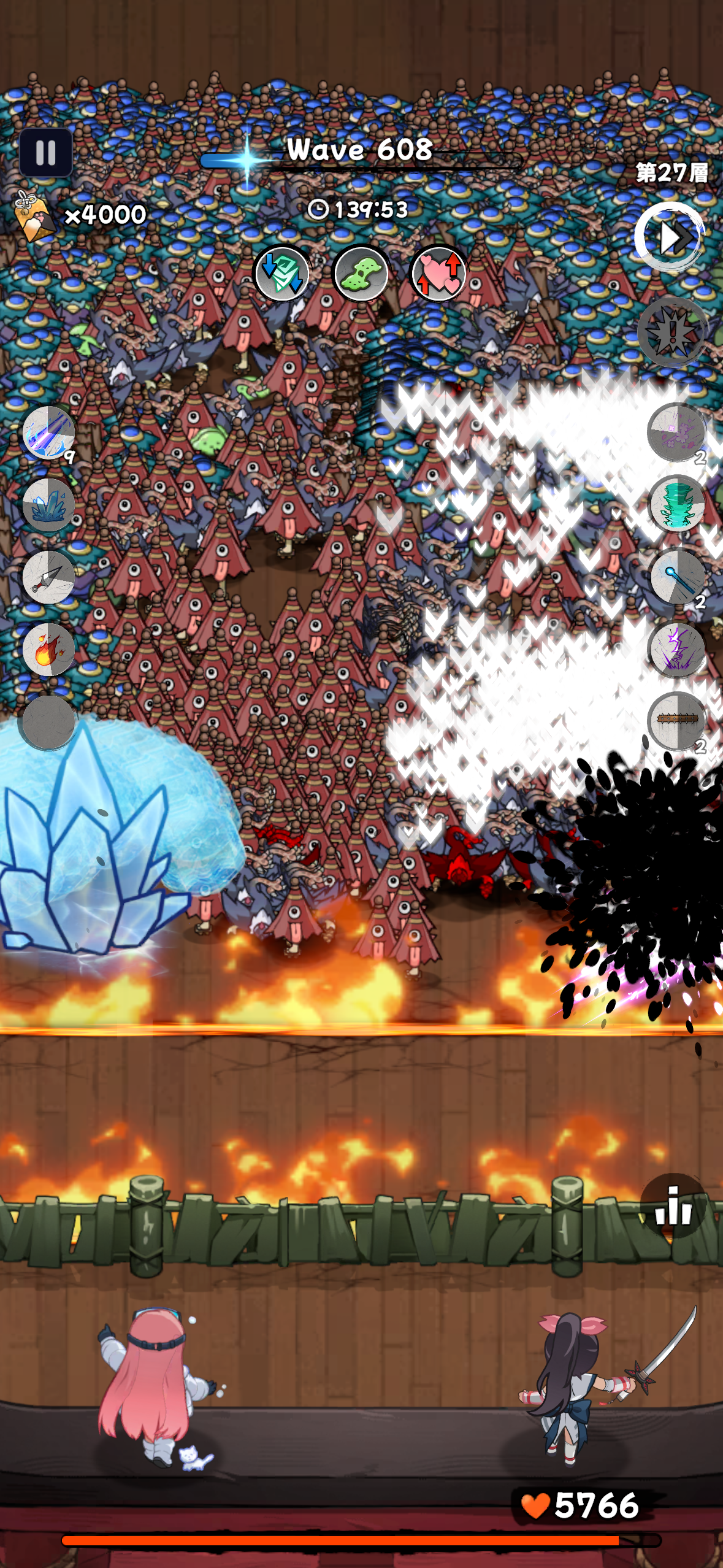 裝飾品比起忍術等級重要的多 只要重要的升級有解鎖. 一般怪物通常是用即死殺死所以傷害不重要. boss可以凍住慢慢磨 或是有解鎖冰霜百分比傷害, 或是用專有忍術直接殺死.