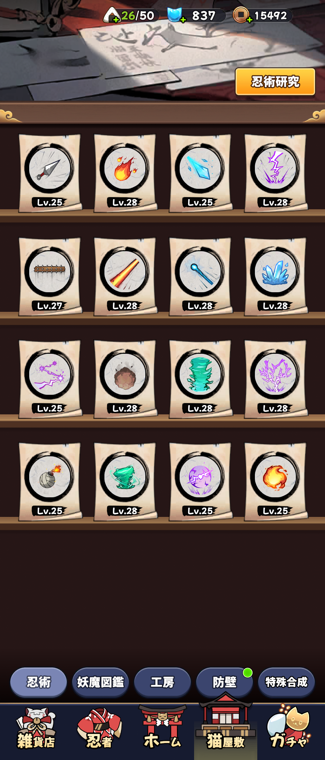やっぱり皆同じ様な感じですね。 クナイの忍術書が余りまくってるから、半分に減ってもいいから 他の術に変換できるようにならんかなぁ、、、