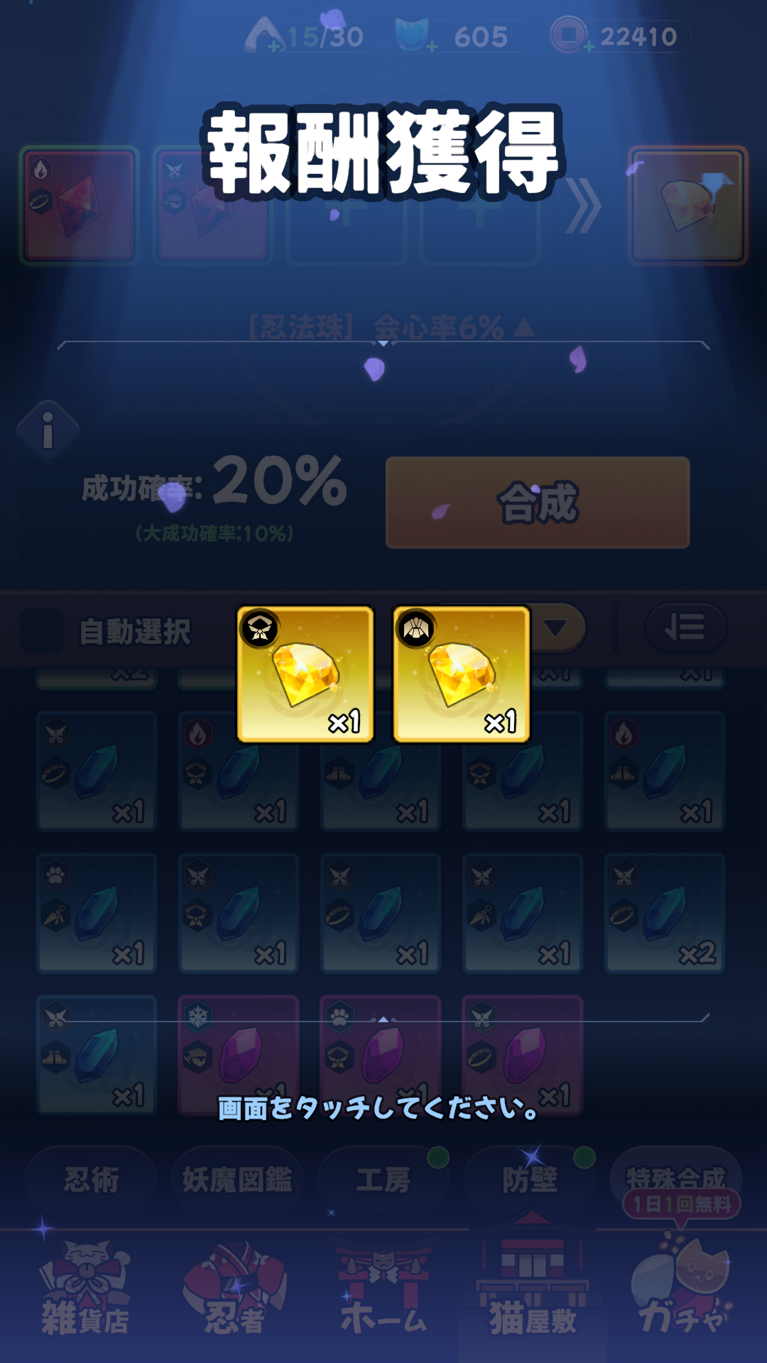 雑貨店やガチャの項目をタップしても画面が切り替わらずホーム画面のまま (BGMは切り替わり当たり判定もある)