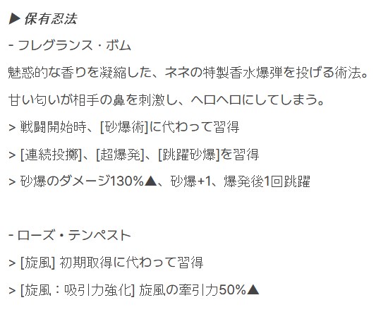 >>8540 これ忍術の先行習得とダメ130とか砂爆+1とかの効果は別だと思ってる 超爆発ってダメ150増だから