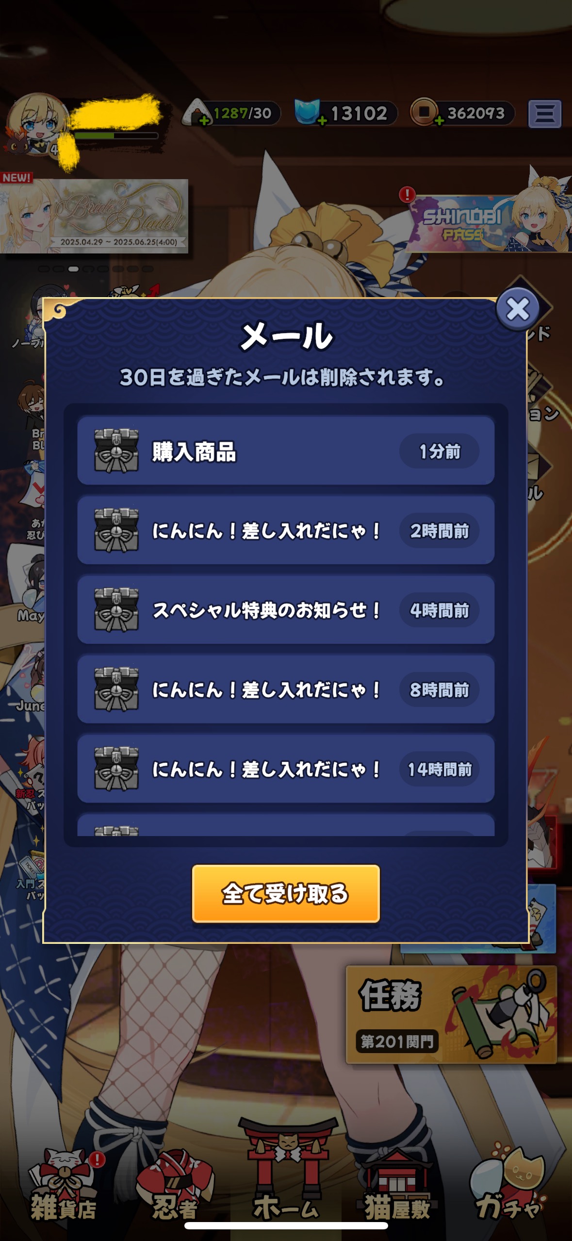 無課金の者ですが、最近になってCMが苦痛になってきた。 おにぎり6個、忍術、ラッキーショップで青猫、コイン、おにぎり。 すらも消化しきれない。 広告で2つ目のアプリ紹介はじまるのやめてくれんかなぁ。 かってにGoogleプレイ連動で起動したり、広告アプリがインストールされていたらそっちを起動させたりするのは、みなくなったというのに